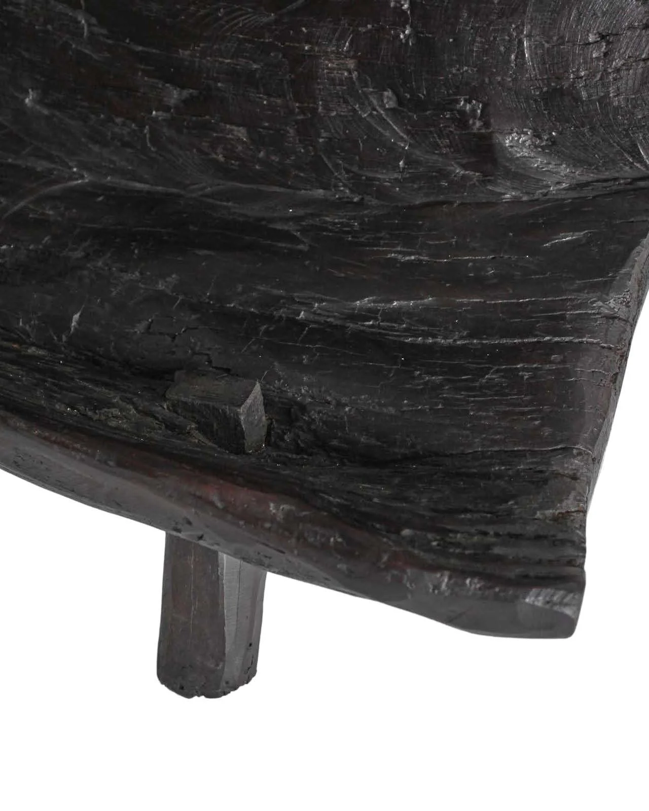 The surface bears a deep, natural patina developed through prolonged use and exposure, revealing subtle shifts in tone, compression, and wear. Tool marks remain visible throughout, offering quiet evidence of the process rather than ornament