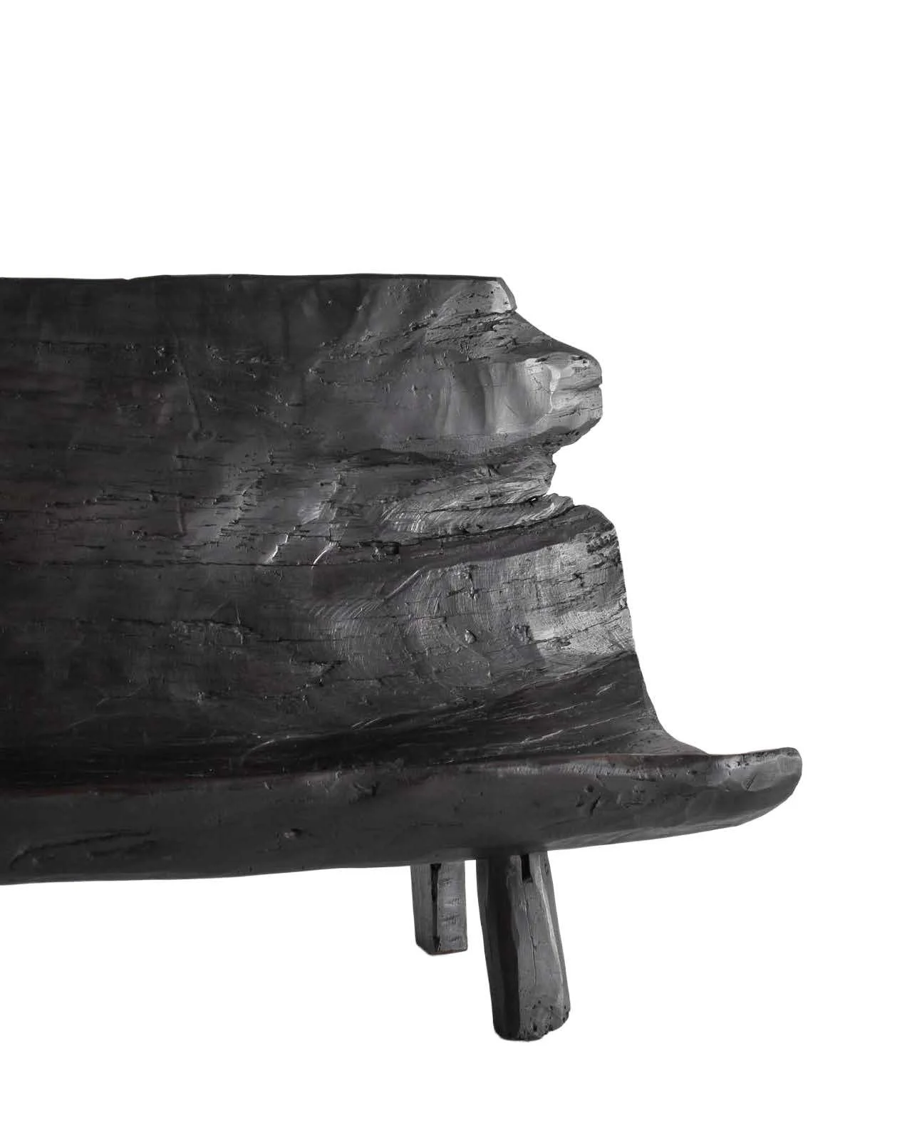 Carved from a single trunk of walnut, this bench was hollowed by hand using traditional methods once common to the mountainous regions of northern Portugal. Its form is shaped less by design than by material constraint and necessity, with the mass of the wood guiding its final proportion