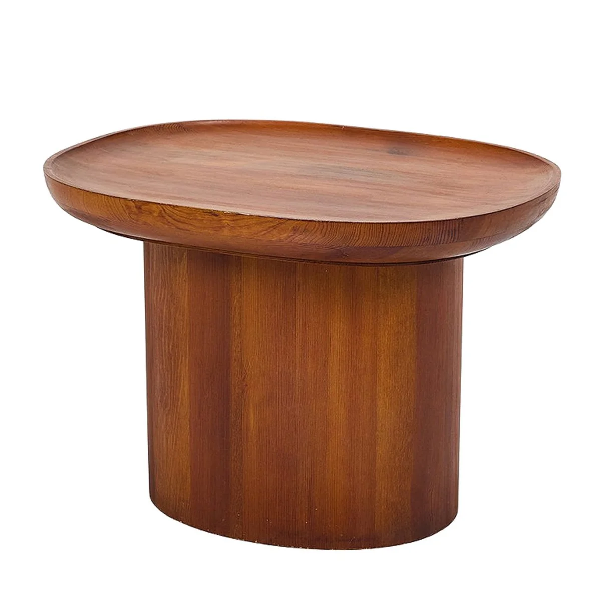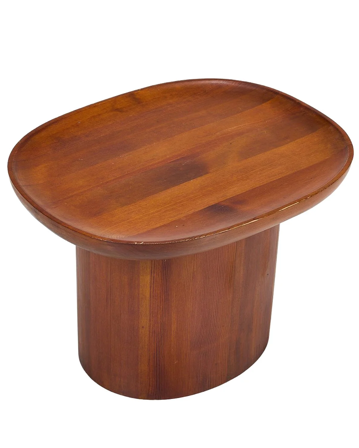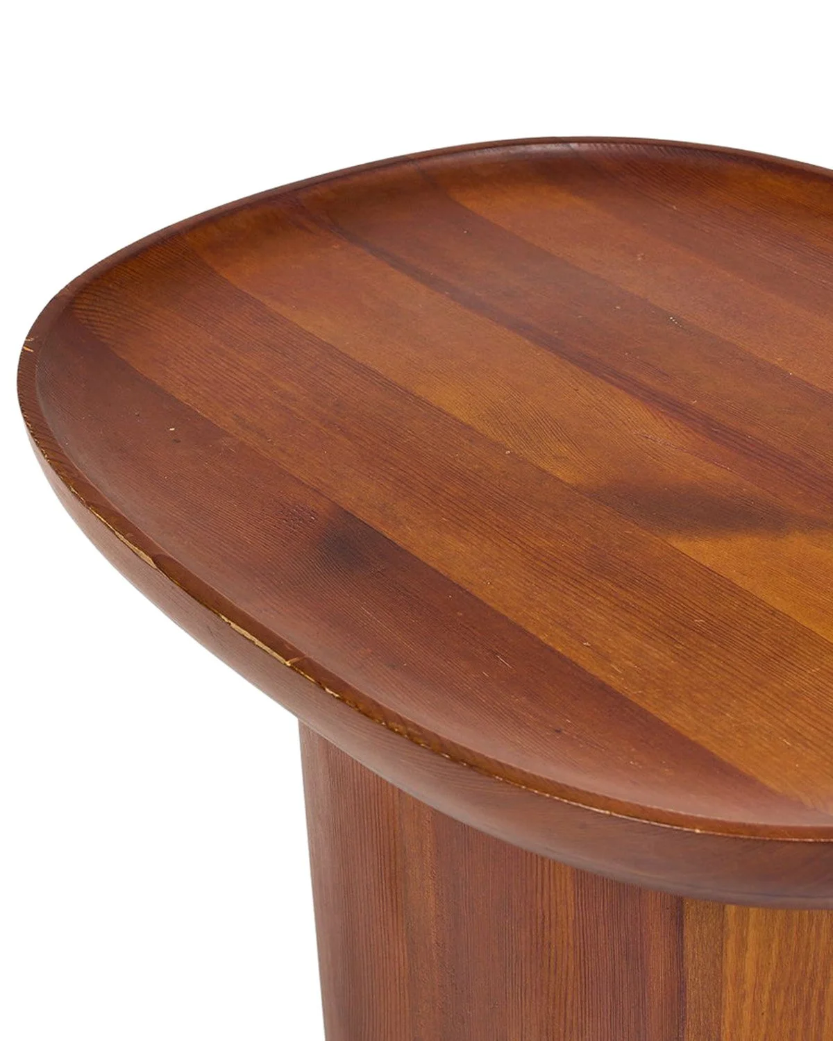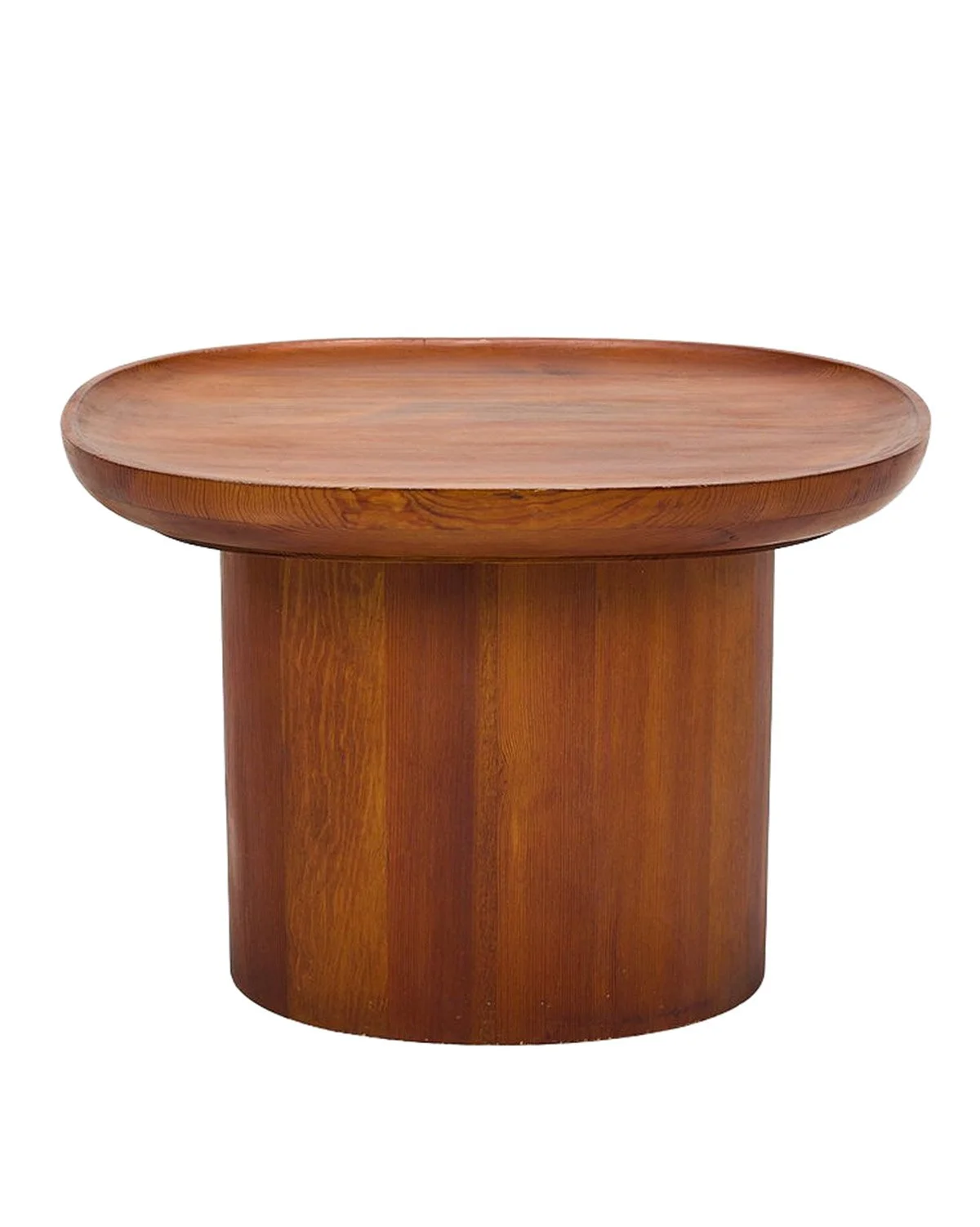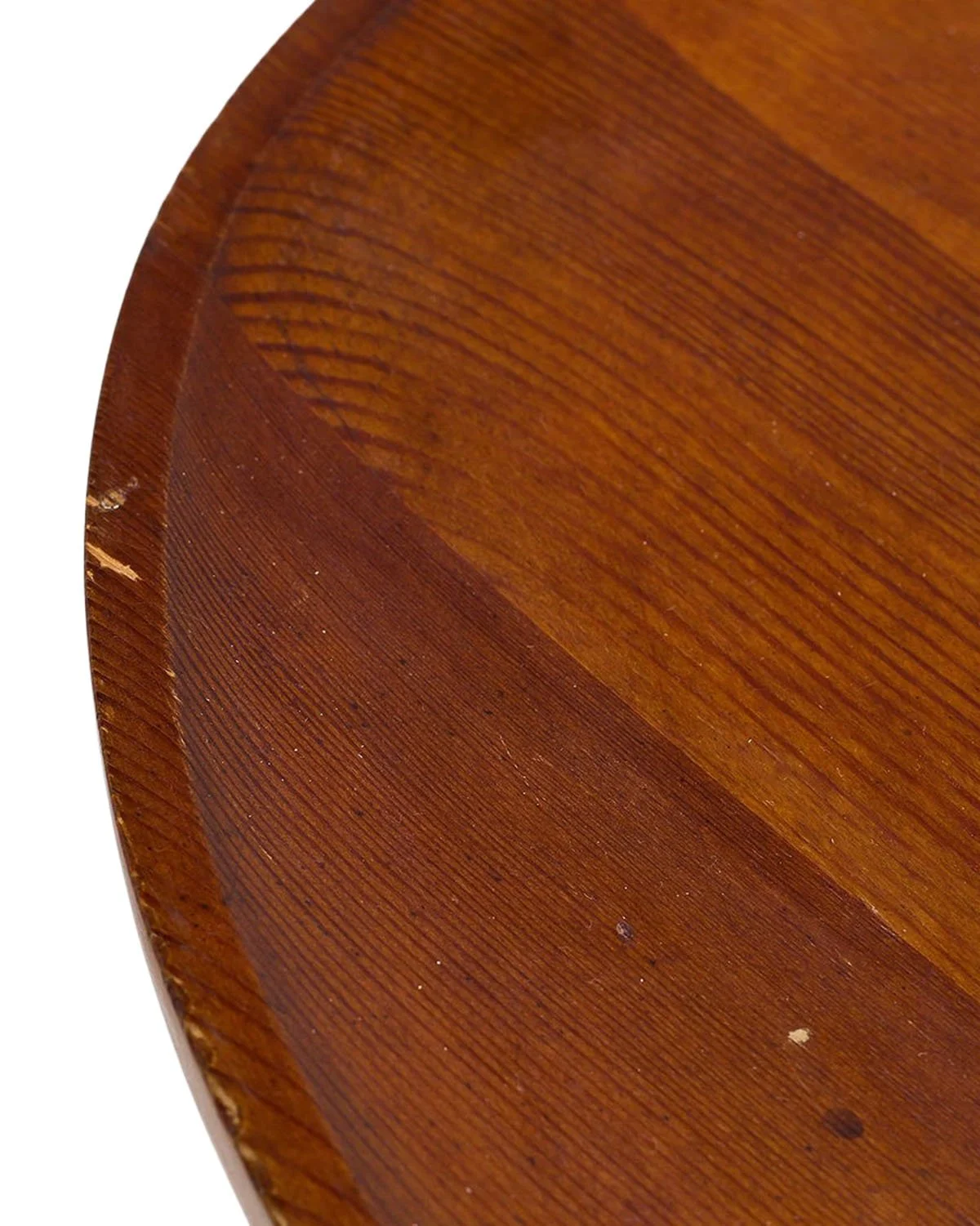 An early and significant example from Axel Einar Hjorth’s Utö series, this table reflects the designer’s exploration of reduced form and material honesty during the early 1930s. Crafted in stained pine, the piece is defined by its softly rounded, bowl-like tabletop and a cylindrical pedestal base, both shaped with an economy of gesture that emphasizes structure over ornament